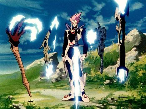 Вопрос о пяти оружиях Даркстара!Кандзака: В аниме световые лезвия появились в тот момент, когда оружия были перенесены в мир Лины и других, и адаптированы, чтобы им могли пользоваться люди. Изначально же появляется то, что пользователь считает соответствующим образу каждого оружия.