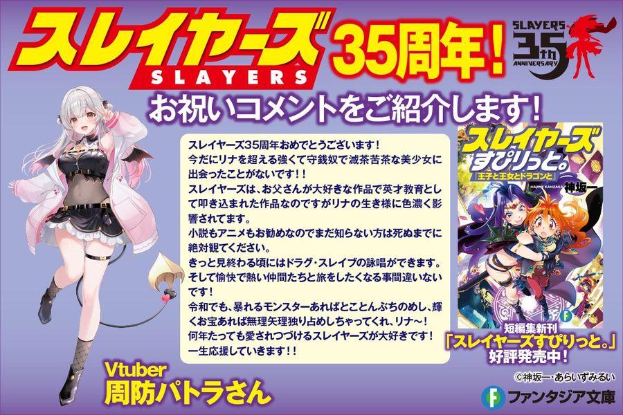 Примечание переводчика: речь о свежем выпуске игрового журнала «Comptiq», посвящённом ДР Суо Патры, в котором опубликована её беседа с Кандзакой и история её любви к Рубакам. Комментарий Суо Патры к «Slayers Spirit».