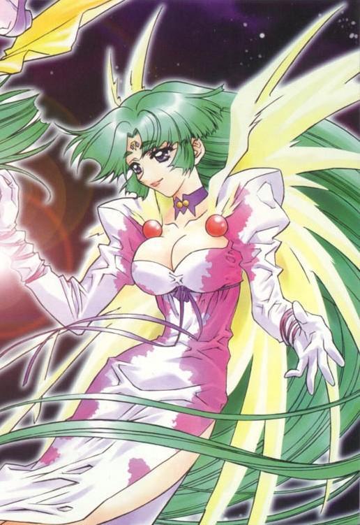 Что касается Вольфиида, то упоминались появившиеся в TRY пришлые боги и Ангел Канал в LosUni. А по поводу Цефеида: существуют ли аналогичные сущности вроде ангелов, или, скорее, вассалов, которые действуют по воле богов, или подчинённые, подобные пяти Приближённым Шабранигдо?Кандзака: В ту эпоху, когда Цефеид существовал, таких сущностей не было. Когда он пал в битве с Повелителем Тьмы, он породил Четырёх Королей Драконов Земли, Воды, Огня и Воздуха. Можно сказать, что именно они занимают такое положение.