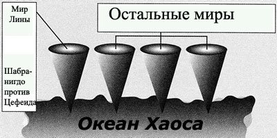 А это устройство вселенной по версии аниме. Океан Хаоса и галактики-миры