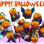 Хеллоуинская картинка. Эль-сама в костюме смерти сидит на тыкве